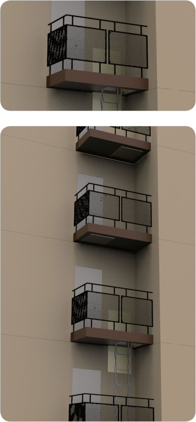 | 서울특별시(건축심의기준 제21조제2항 별표5) | 산하 전 자치구, 서울시건축사회 등에 국토부인정 탈출형대피시설 안내, 권고 공문 배포 (19.04) |