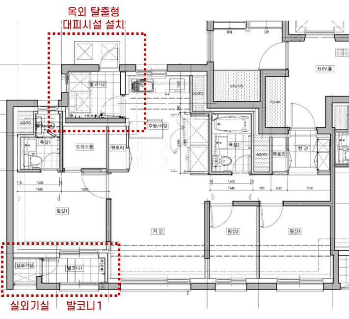 주요 입면의 돌출형 또는 개방형 발코니를 설치한 경우