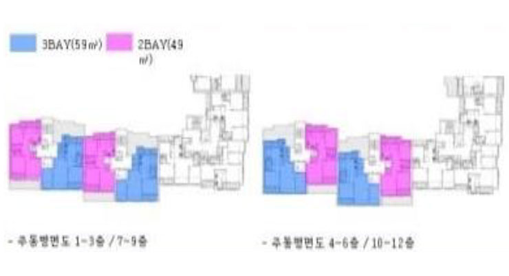 하나의 주동 및 단지내에서 단위주거의 평면의 크기. 형태 및 단면의 형태를 다양화한 경우